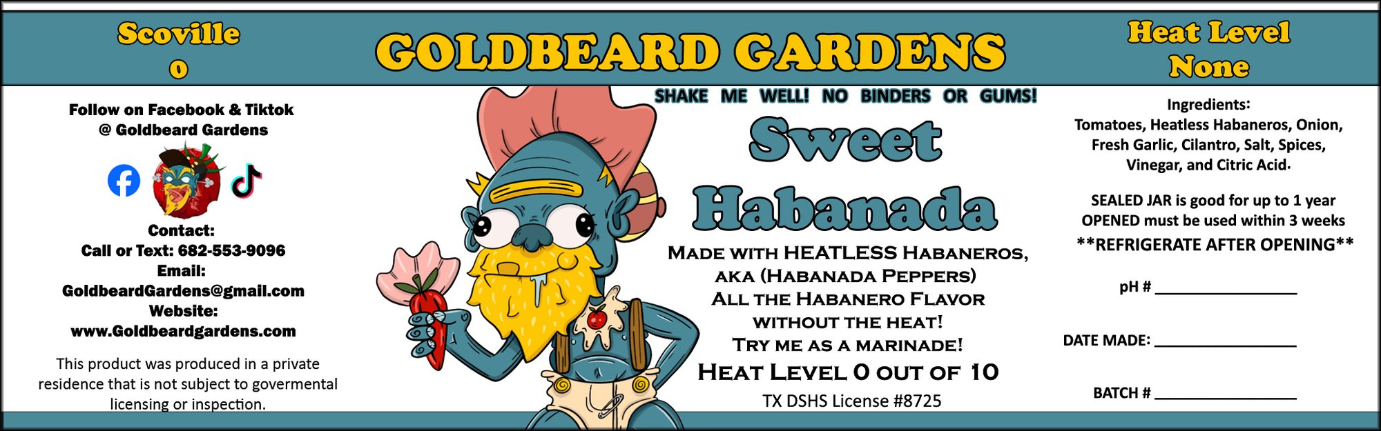 Made with homegrown "Habanada" peppers, a HEATLESS Habanero pepper. Now you can enjoy the unique flavor of Habanero peppers without all the heat.