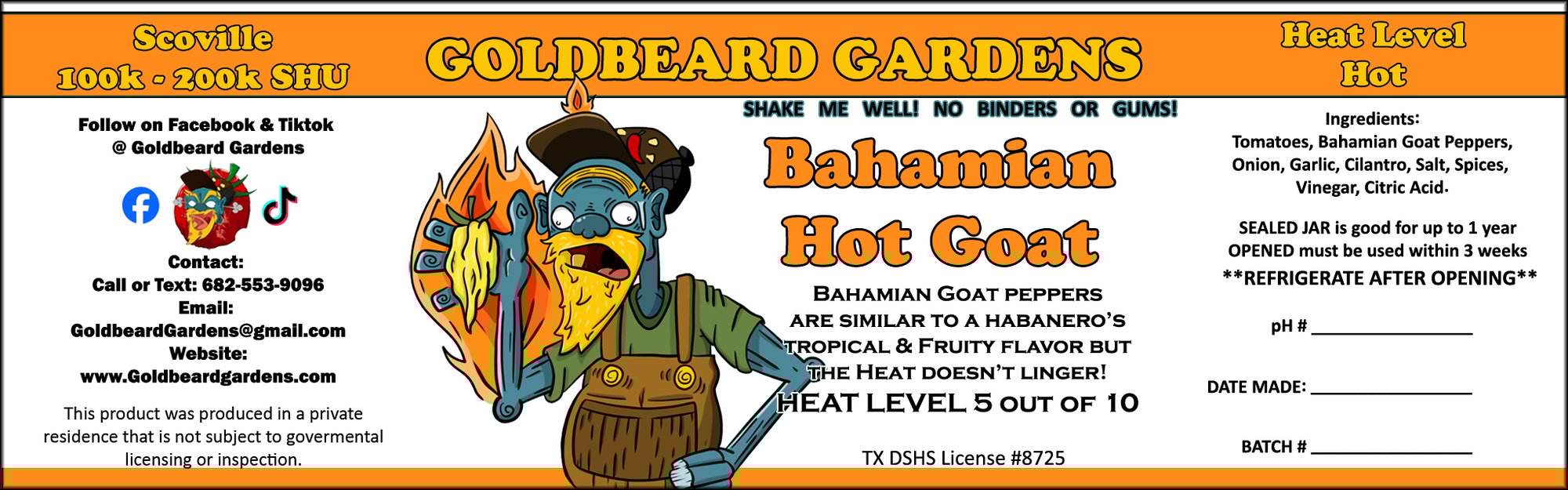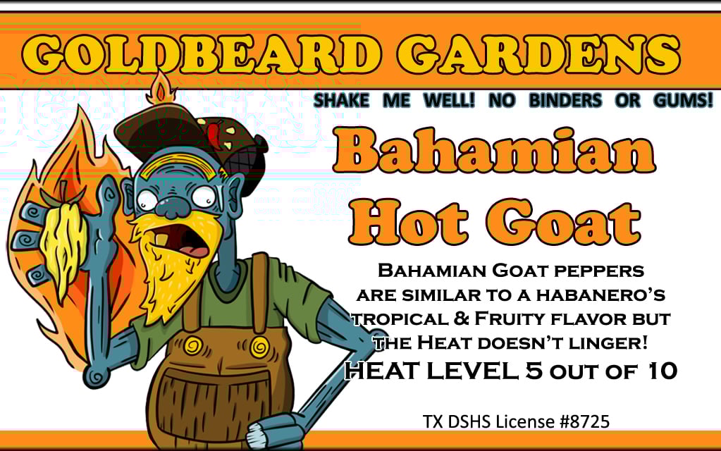 This is a pepper from the Bahamas, and is called the Goat because of its size. It has similar flavor profiles as the Habanero, but more citrus and a little less hot. This one has been a favorite among customers.