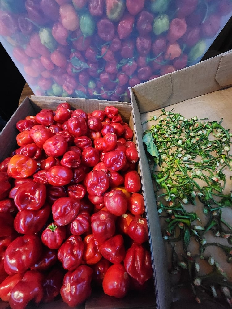 Made with Roasted Red Habanero, Garlic, Onion, vinegar, Citric acid, spices.